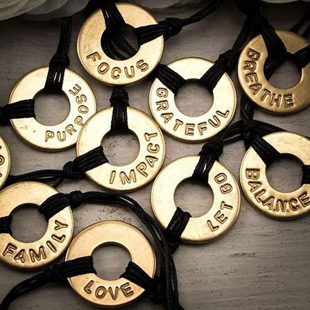 - Intention | Each bracelet holds a personal word or phrase, stamped by hand