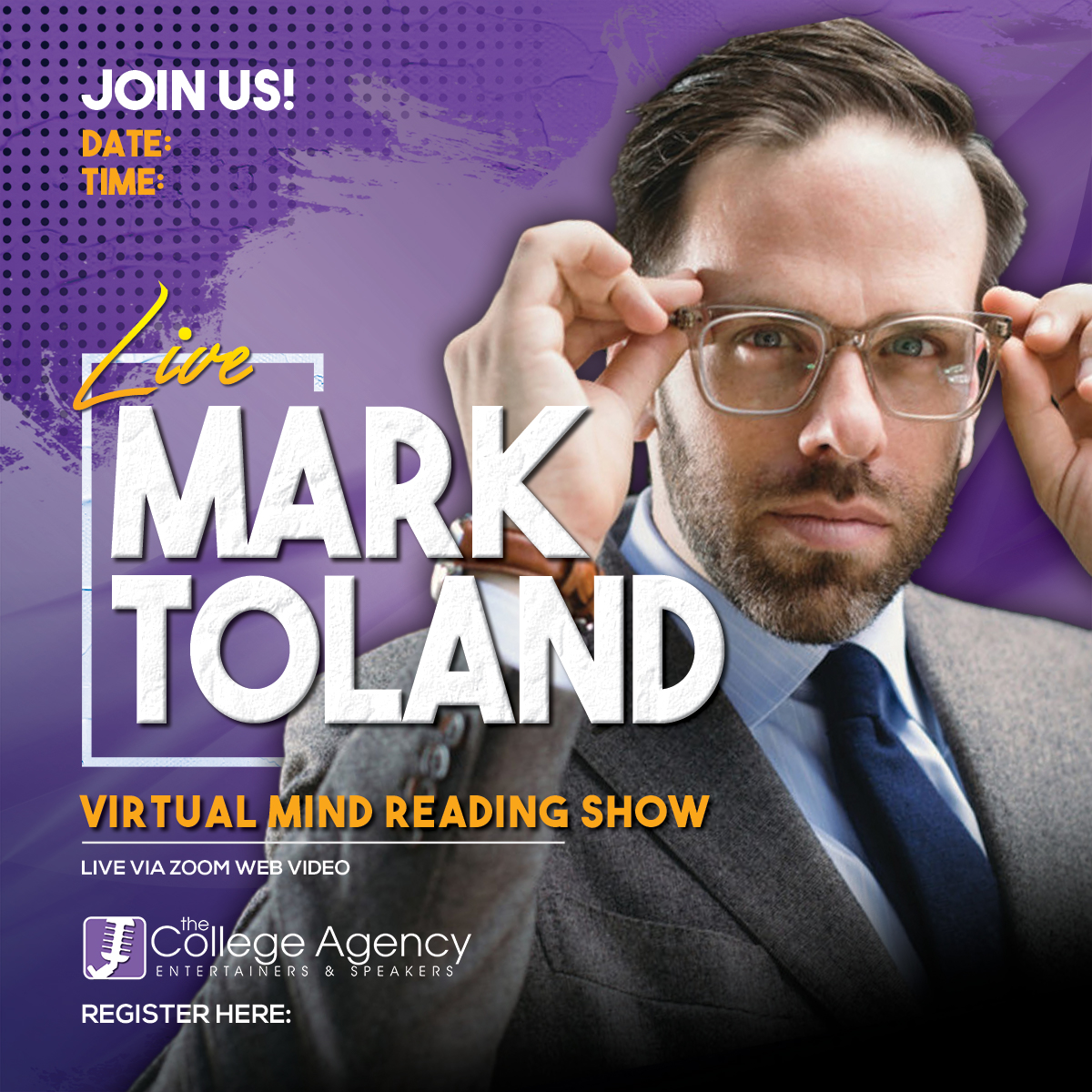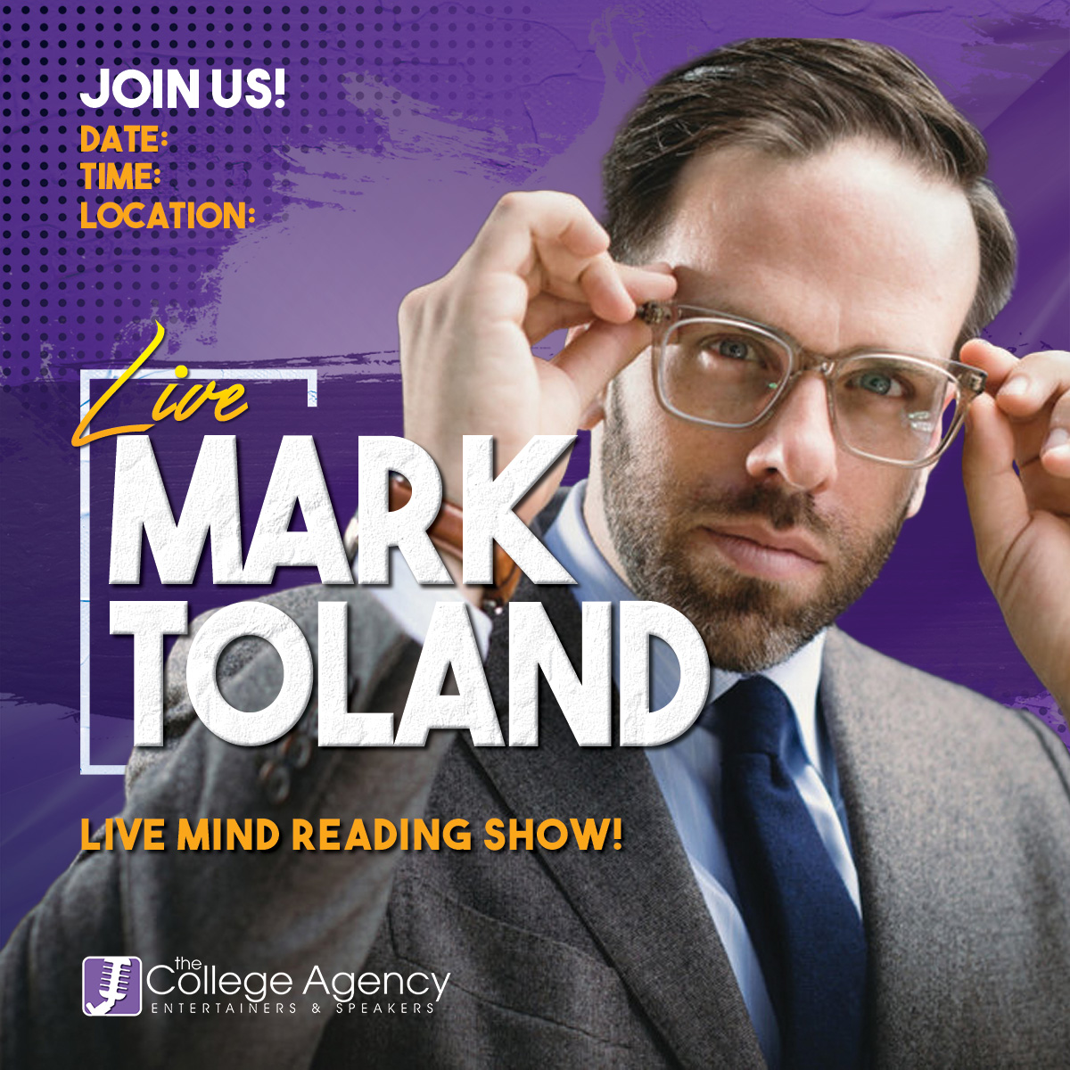Mark Toland is an internationally award-winning mind reader and two-time TEDx Speaker. His mind blowing skills have been featured on NBC, ABC, FOX, CBS, WGN, NPR, Sirius XM, and more. His one-man show has won numerous awards including "Best Special Event" (Chicago Theater Awards), "Best of Fest" (NYC), "Best of Fest" (KC Fringe), "Critics Choice" (Portland), and "Pick of Fringe" (Orlando) - just to name a few. The Chicago Tribune says Mark is "Mind blowing!" and KC Applauds says "Toland's skills produce gasps, awe, thunderous applause, standing ovations, and head-shaking disbelief. Do not miss your opportunity to see Mark Toland.”
